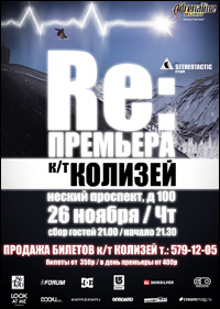 Rе: - правда о тех, кто по 7 месяцев в году находится в поисках снега. В проекции двух больших трипов в Австрию и на Камчатку представлены самые зрелищные трюки 2009 - гигантские пролеты и double-вращения в исполнении братьев Теймуровых, Осы, Андрея Москвина и самоуверенных новичков способны украсить любой масштабный американский продакшн. Но собраны вместе именно здесь, в ежегодном видео отчете от Stereotactic студии.